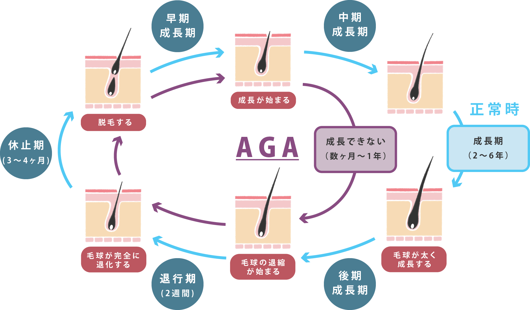 AGAが起こる原因である発毛サイクルが乱れる理由は大きくわけて4つ